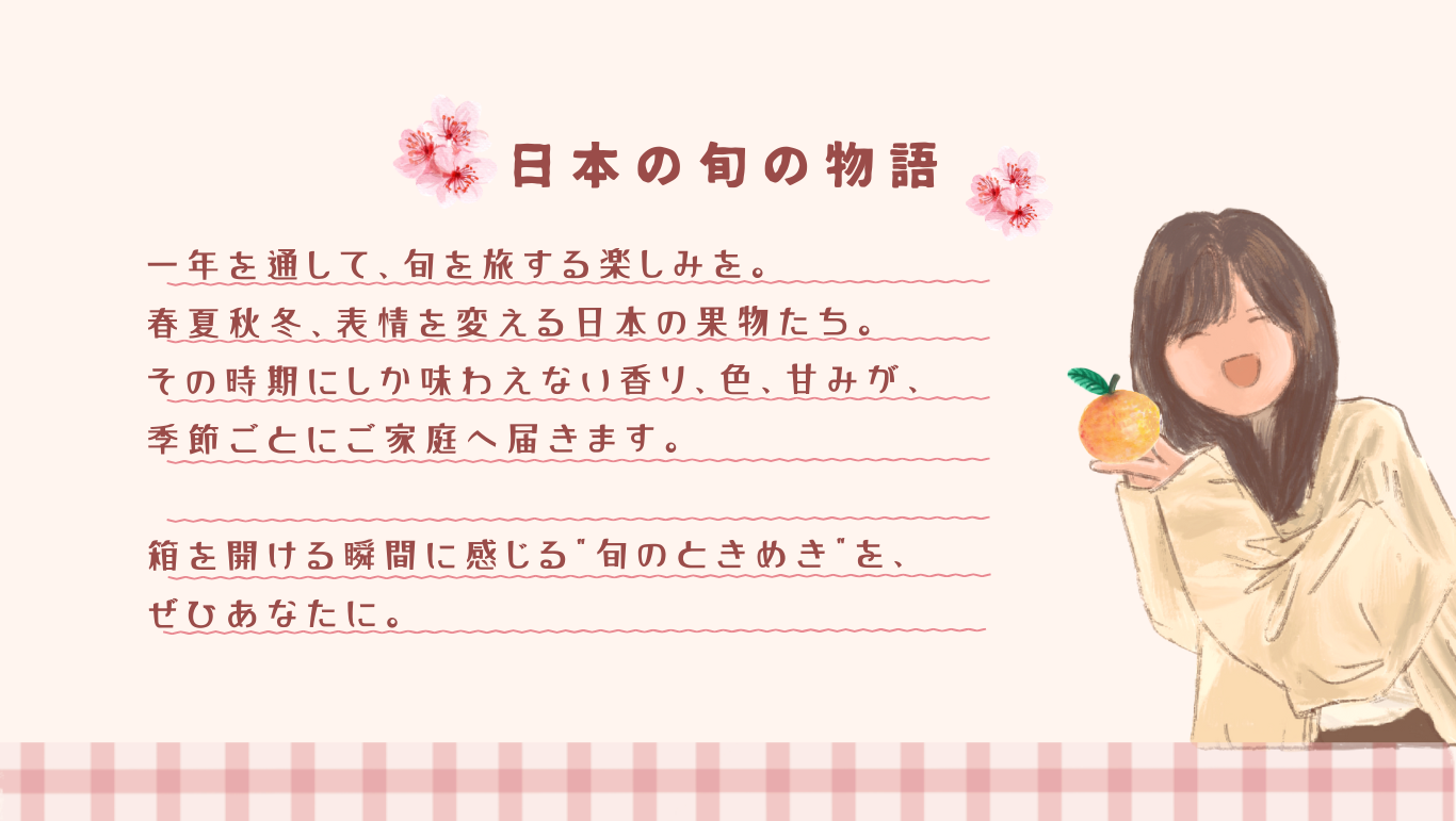 毎月25日前後に旬のフルーツや加工品が届きます。配達のお時間は指定できるのでご都合に合わせてお受け取りください。