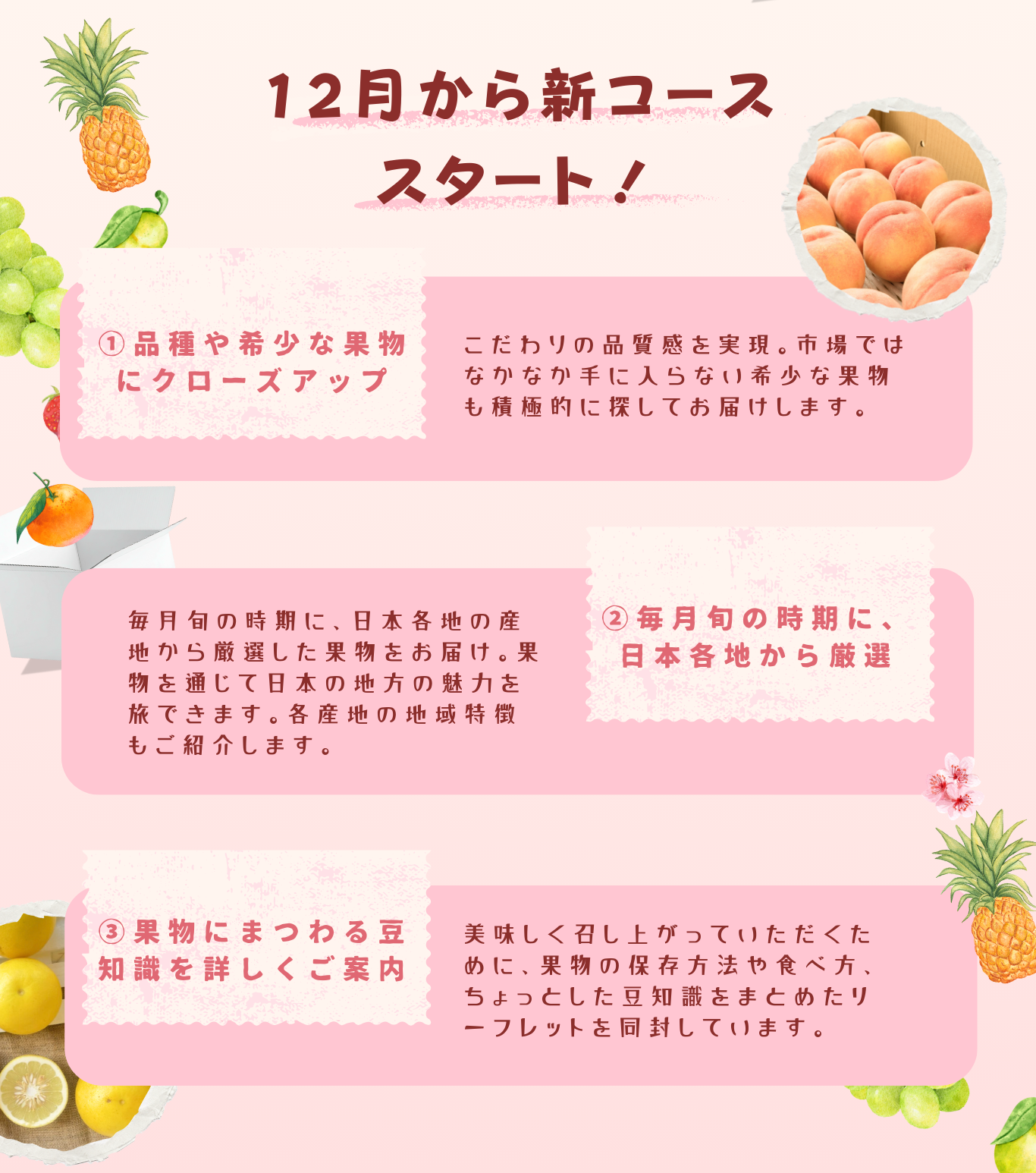 通常の定期便は6ヶ月や12ヶ月の縛りが多い中、「マルタの果物定期便」なら最短3ヶ月で解約可能。気軽に始められます。
